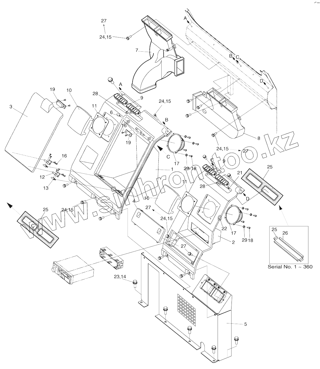 Каталог запасных частей к технике: Doosan SOLAR 130W-V(1). HEATER COVER ASSY