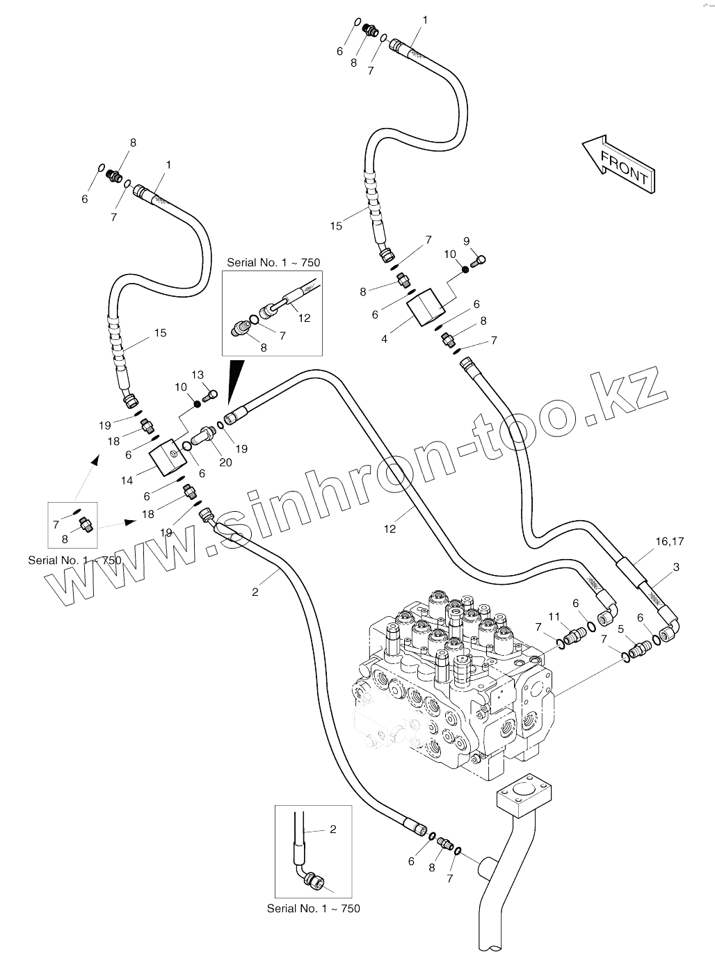 Каталог запасных частей к технике: Doosan SOLAR 130W-V(1). MAIN PIPING-ONE & TWO WAY