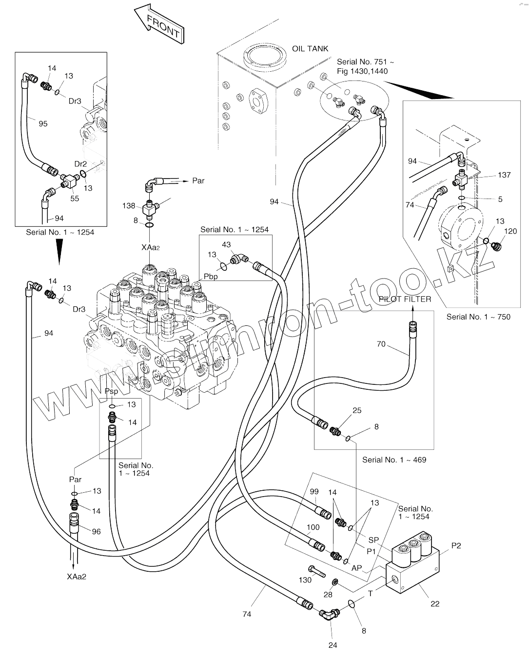 Каталог запасных частей к технике: Doosan SOLAR 130W-V(1). PILOT PIPING (11)