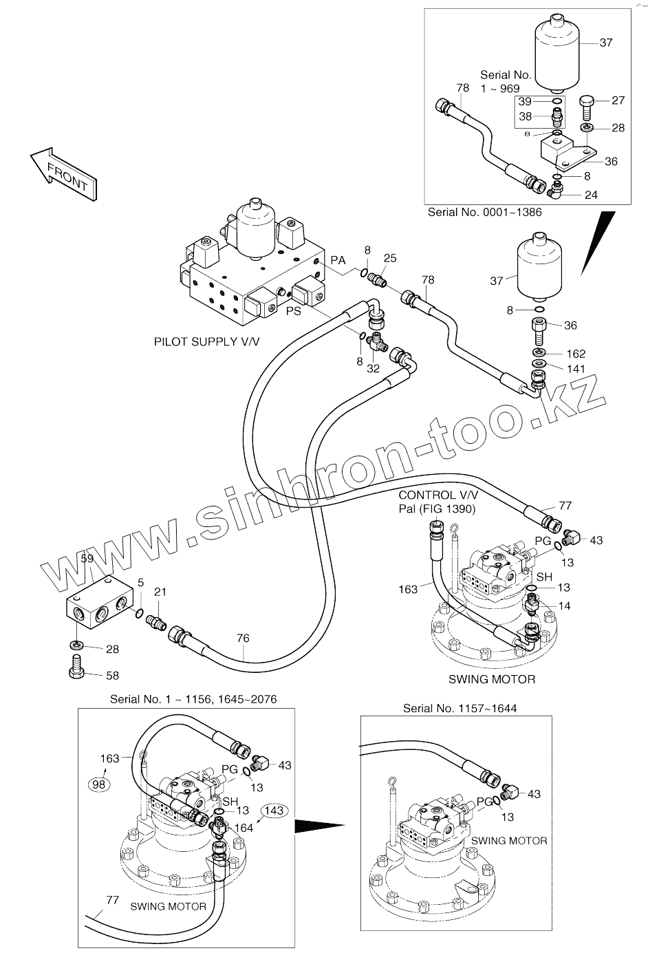 Каталог запасных частей к технике: Doosan SOLAR 130W-V(1). PILOT PIPING (2)