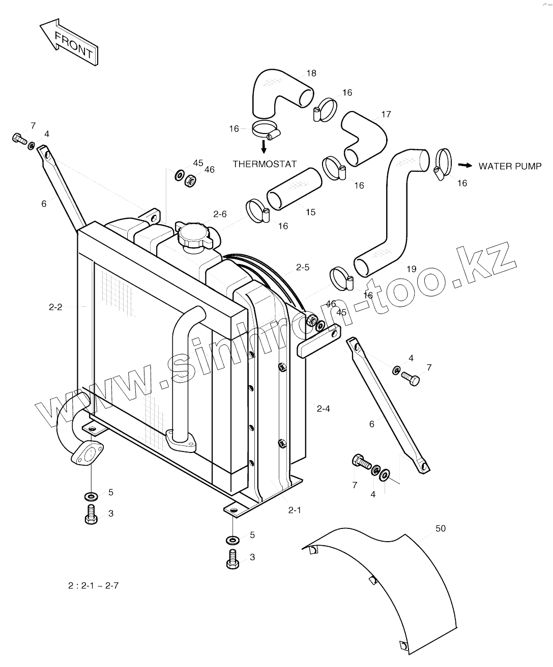 Каталог запасных частей к технике: Doosan SOLAR 130W-V(1). RADIATOR AND OIL COOLER