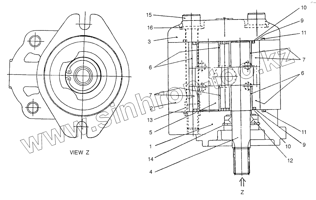 Каталог запасных частей к технике: Doosan SOLAR 130W-V(1). STEERING PUMP (1-1381)