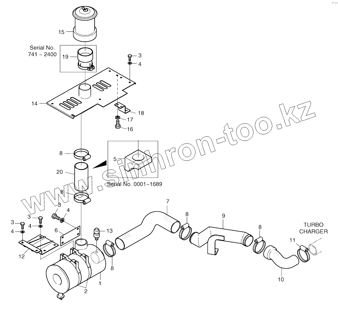 Каталог запасных частей к технике: Doosan SOLAR 130W-V(2). AIR CLEANER-PRE CLEANER