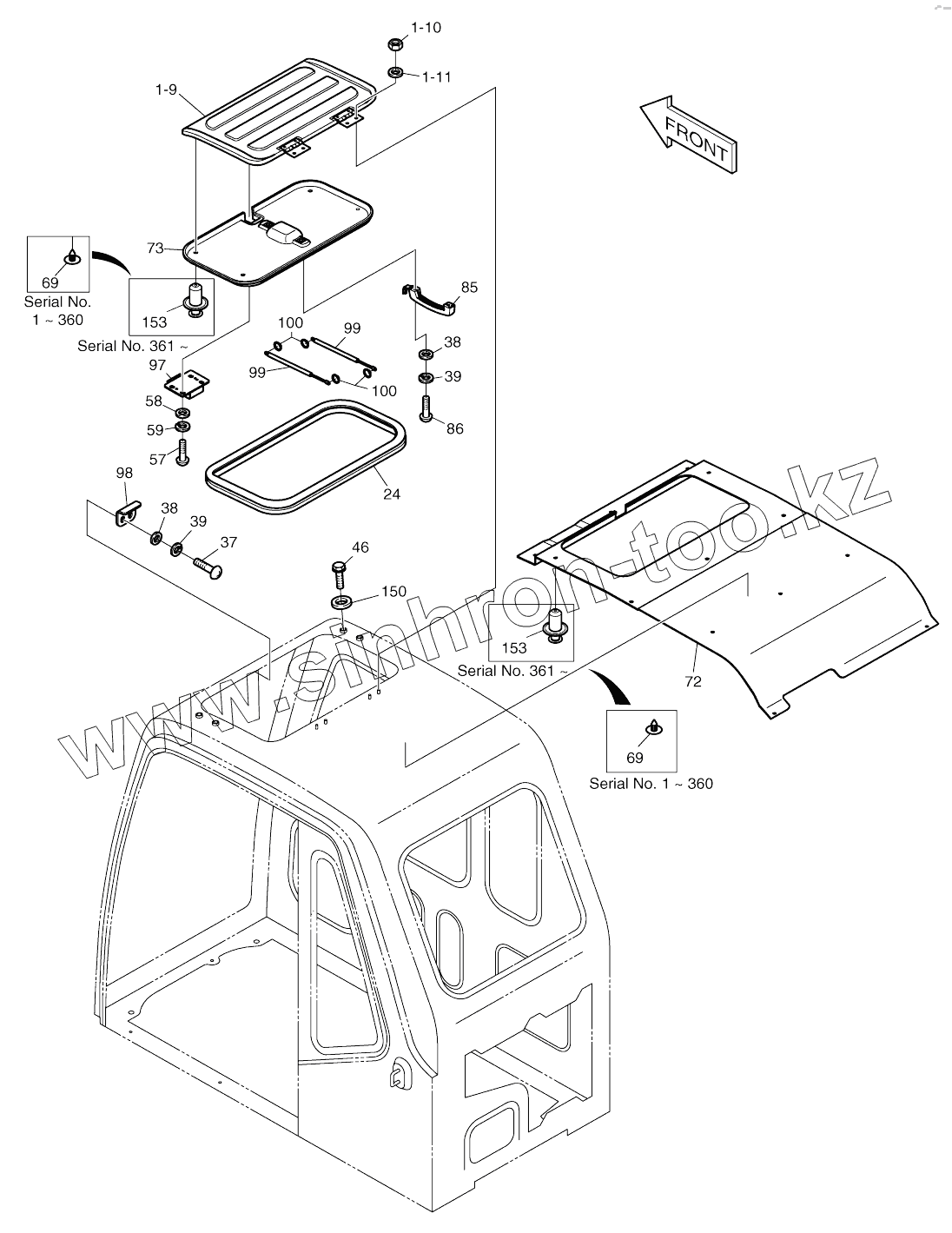 Каталог запасных частей к технике: Doosan SOLAR 130W-V(2). CABIN (4)