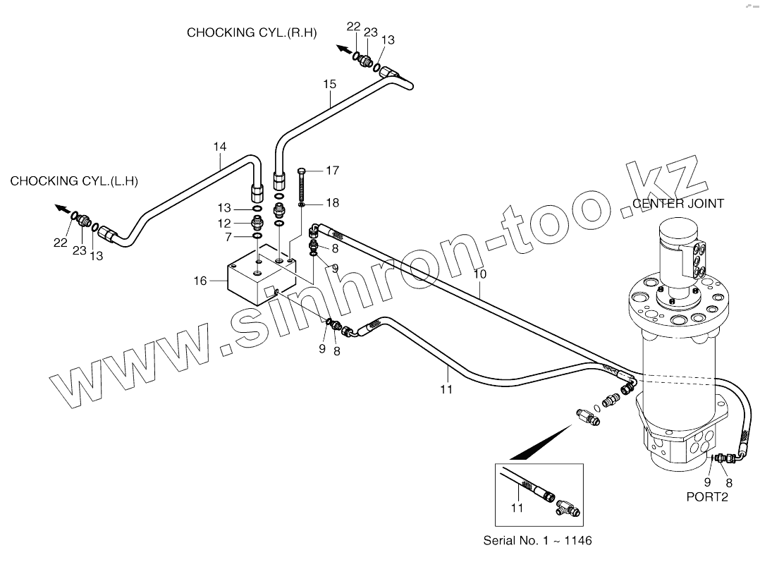 Каталог запасных частей к технике: Doosan SOLAR 130W-V(2). CHOCKING PIPING (1147-)