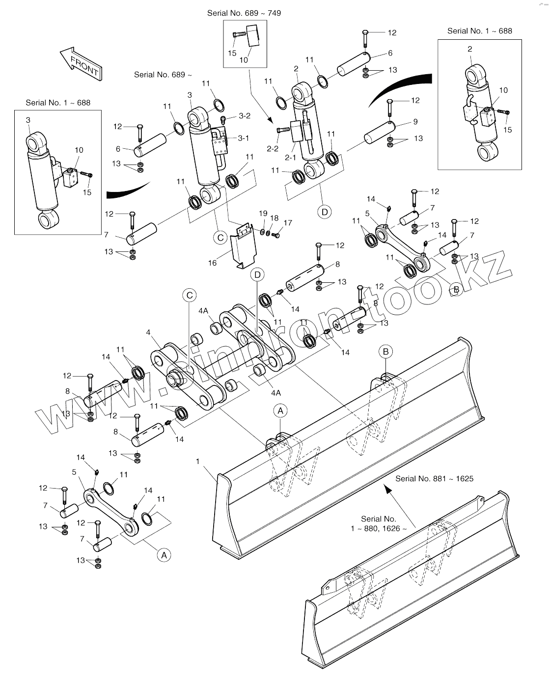 Каталог запасных частей к технике: Doosan SOLAR 130W-V(2). DOZER BLADE