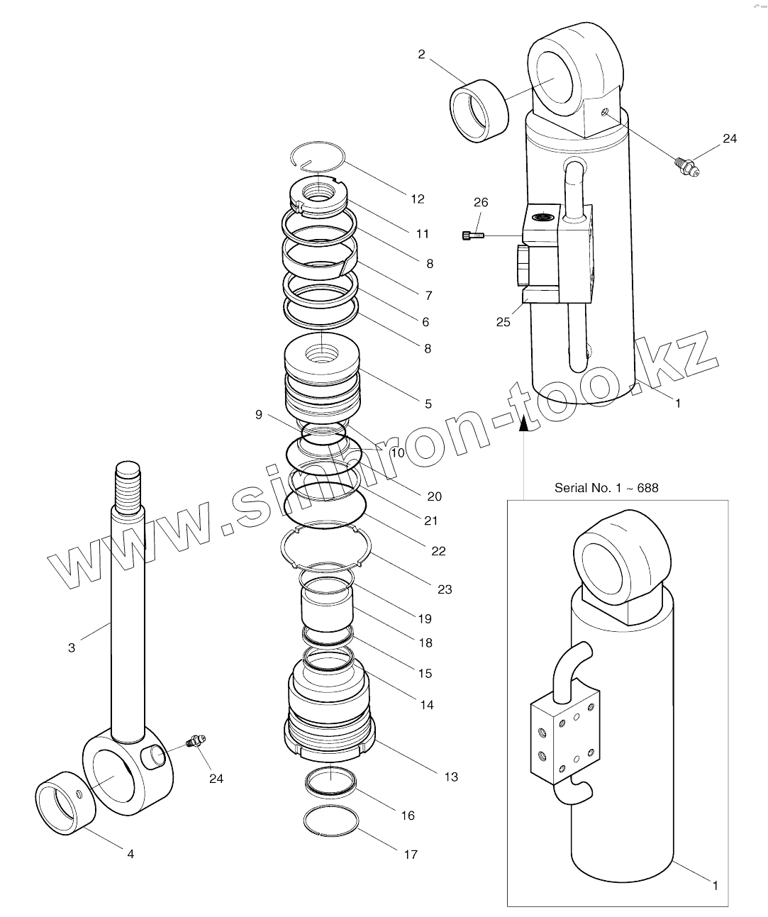 Каталог запасных частей к технике: Doosan SOLAR 130W-V(2). DOZER CYLINDER-R.H