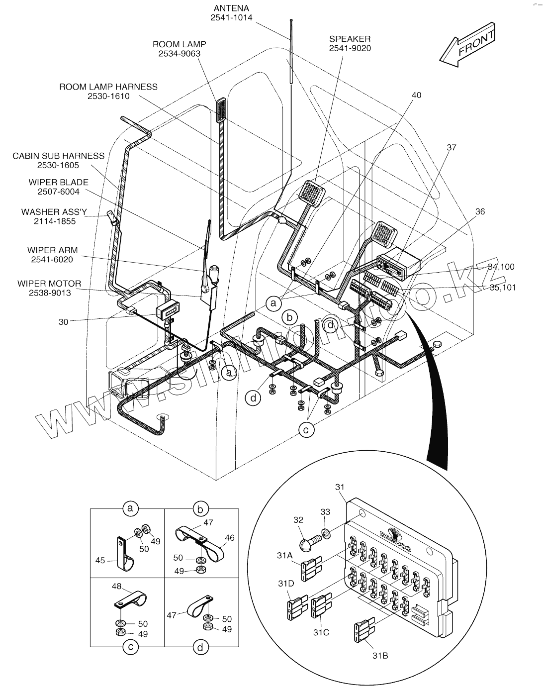 Каталог запасных частей к технике: Doosan SOLAR 130W-V(2). ELECTRIC PARTS (3)-CABIN