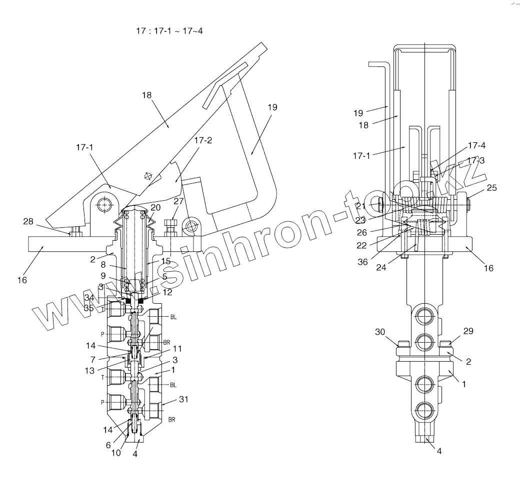 Каталог запасных частей к технике: Doosan SOLAR 130W-V(2). FOOT BRAKE VALVE