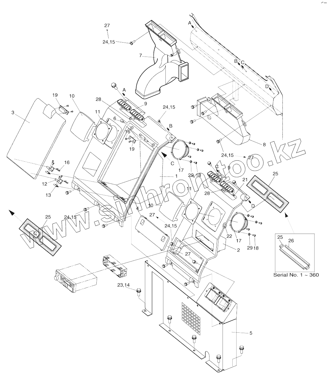 Каталог запасных частей к технике: Doosan SOLAR 130W-V(2). HEATER COVER ASSY
