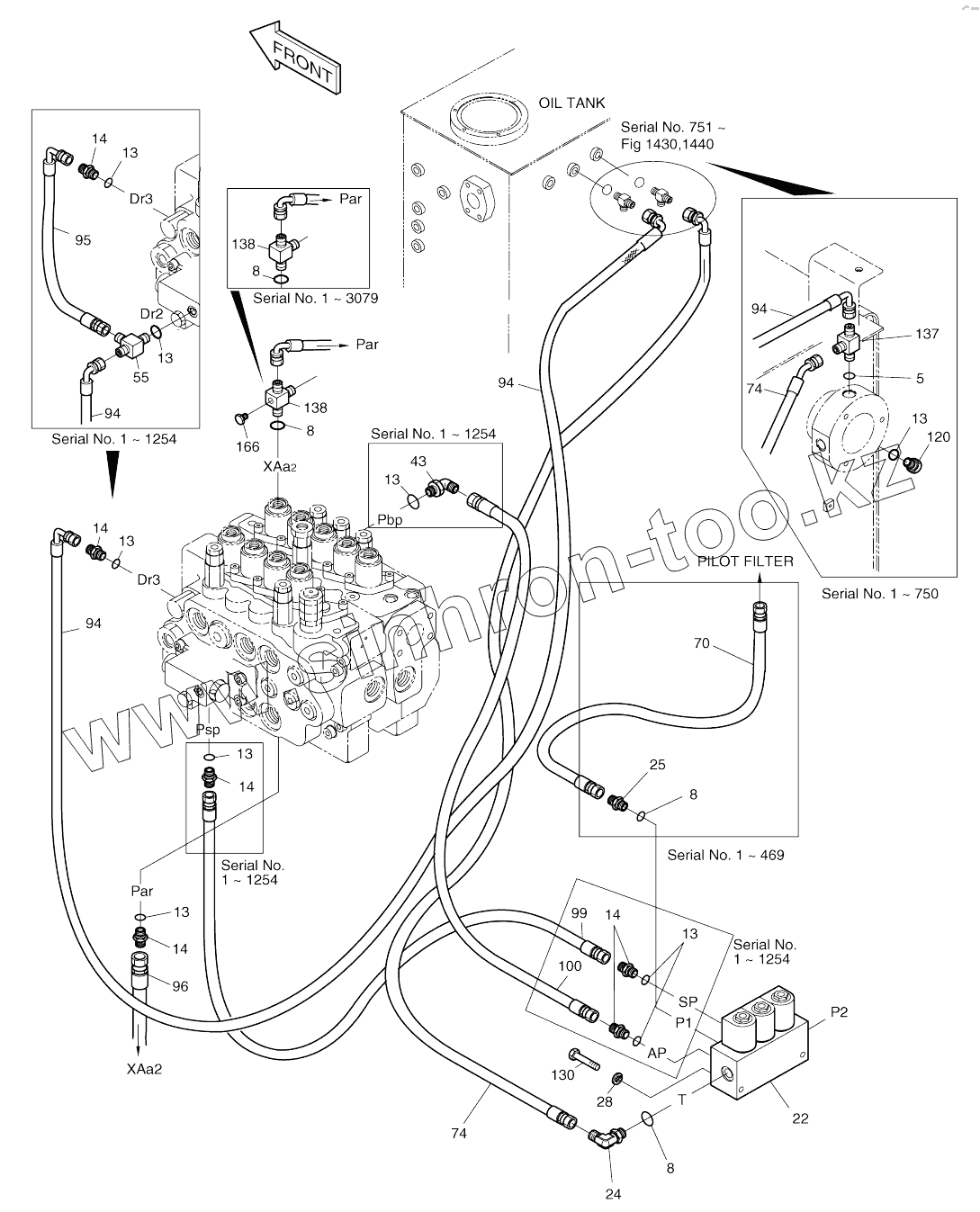 Каталог запасных частей к технике: Doosan SOLAR 130W-V(2). PILOT PIPING (11)