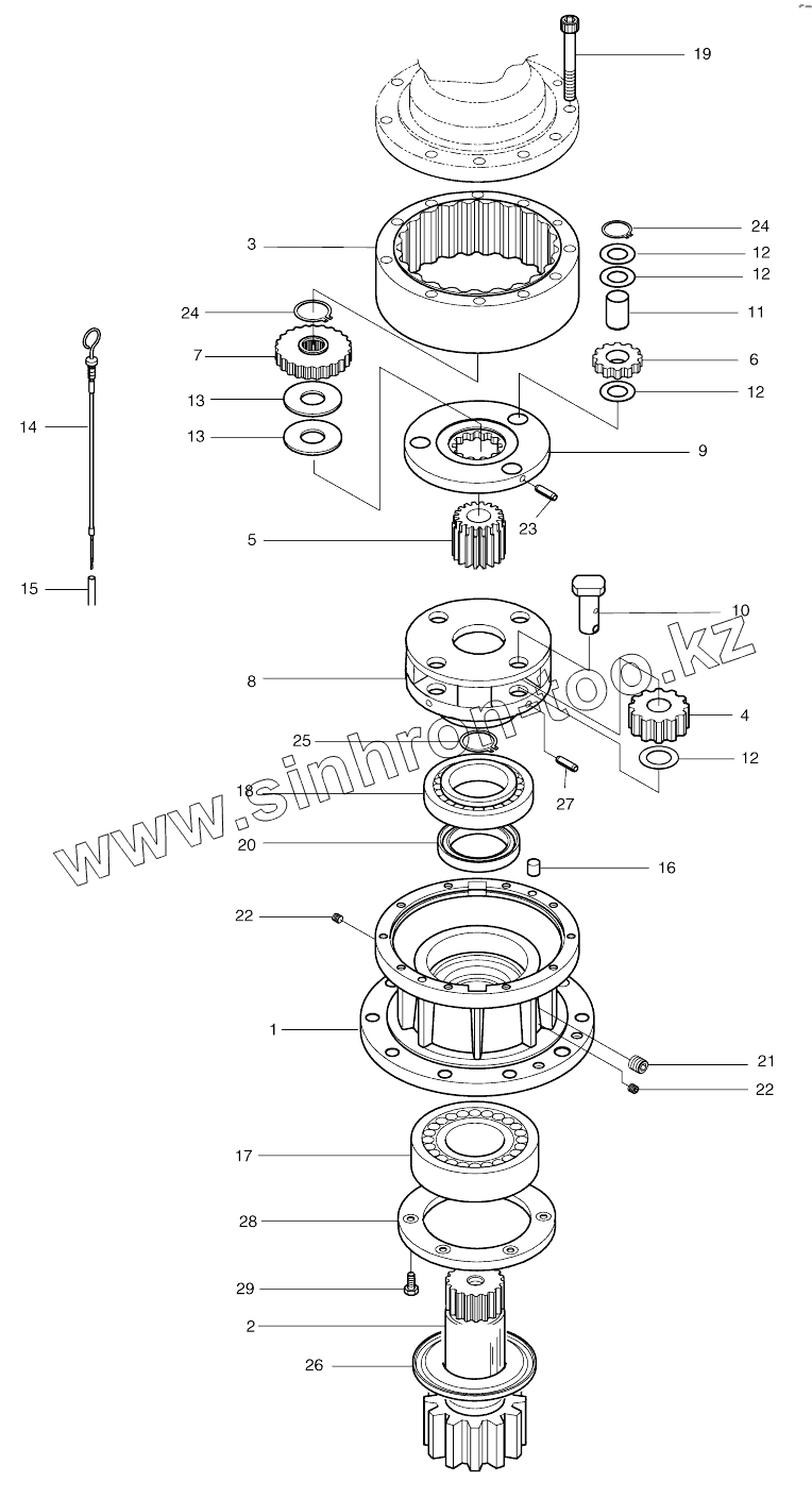Каталог запасных частей к технике: Doosan SOLAR 130W-V(2). SWING REDUCTION GEAR (701-)