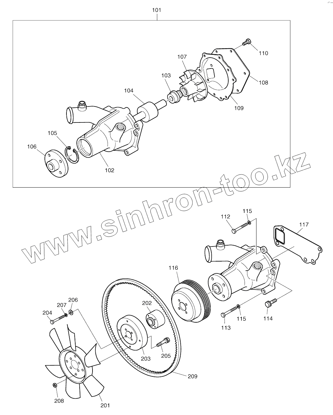 Каталог запасных частей к технике: Doosan SOLAR 130W-V(2). WATER PUMP AND COOLING FAN