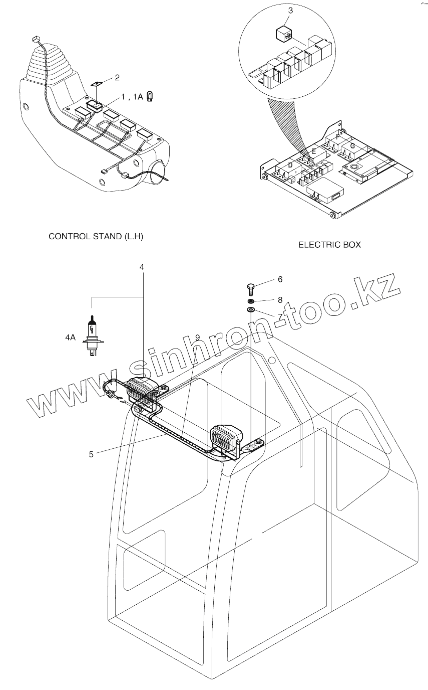 Каталог запасных частей к технике: Doosan SOLAR 140W-V. 2 - CABIN LAMP ASSY