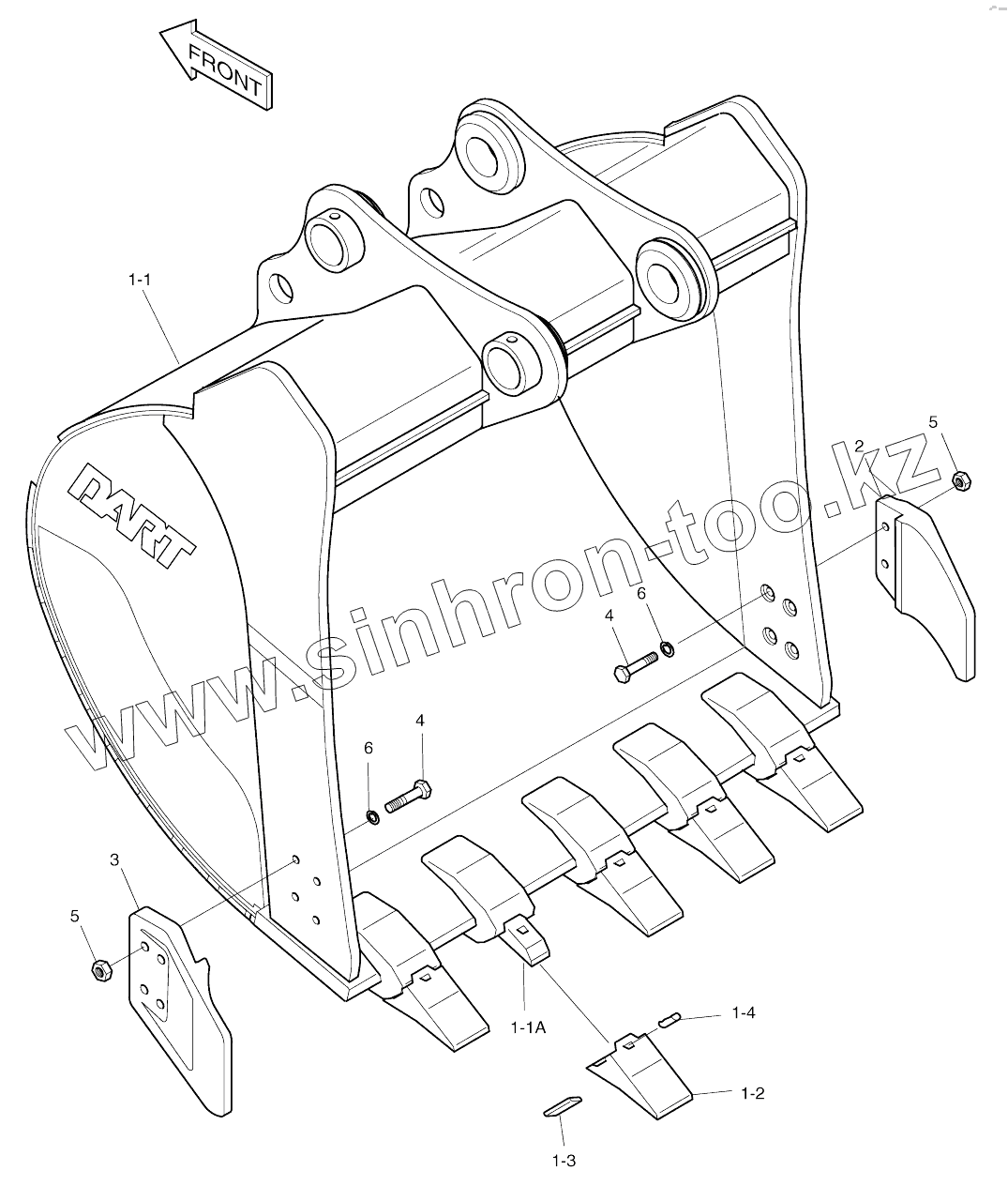 Каталог запасных частей к технике: Doosan SOLAR 140W-V. BUCKET - 0.44m3 (33") - VERTICAL PIN