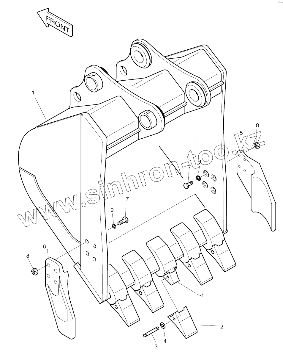 Каталог запасных частей к технике: Doosan SOLAR 140W-V. BUCKET - 0.45m3