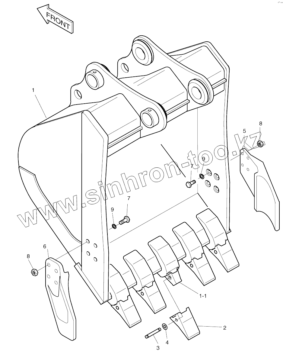 Каталог запасных частей к технике: Doosan SOLAR 140W-V. BUCKET - 0.55m3