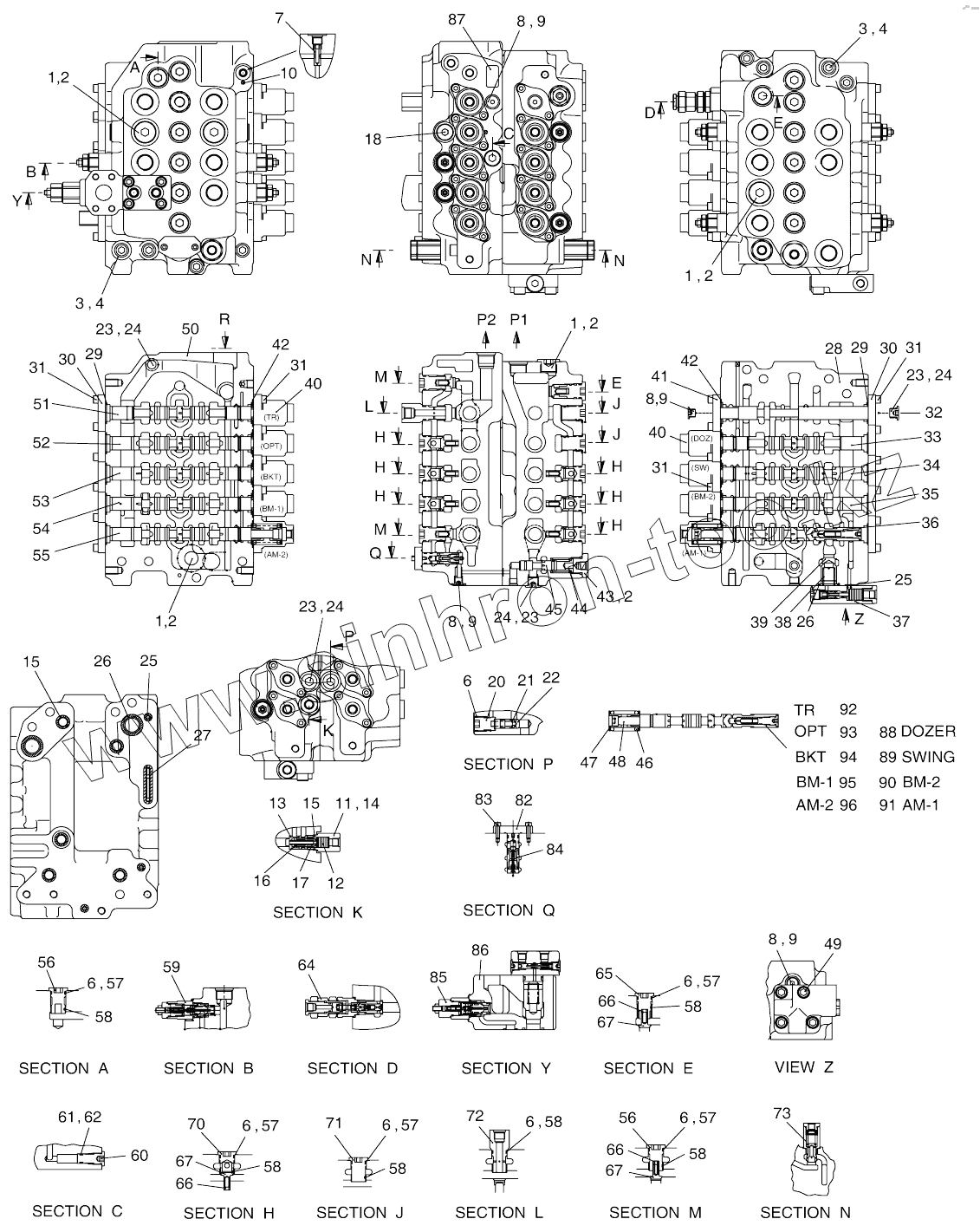 Каталог запасных частей к технике: Doosan SOLAR 140W-V. CONTROL VALVE