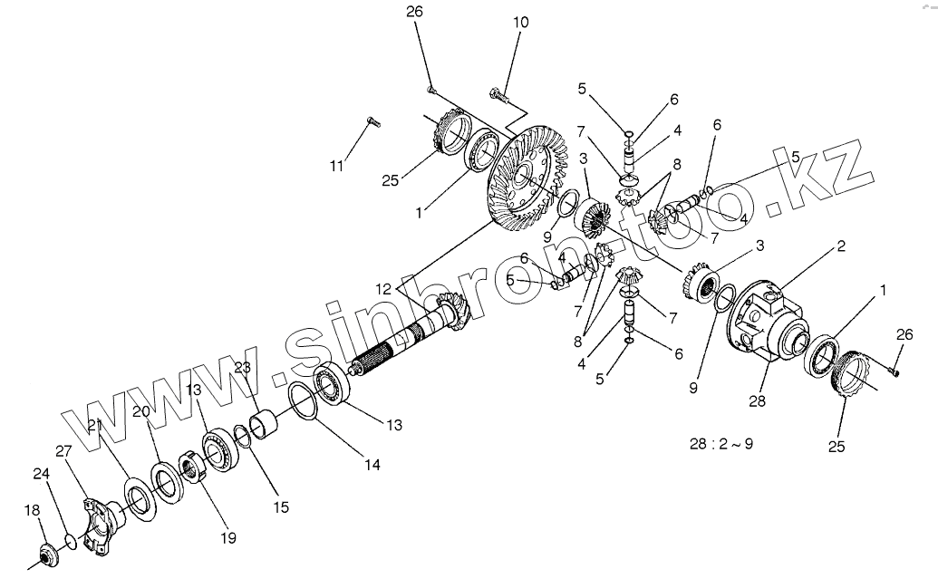 Каталог запасных частей к технике: Doosan SOLAR 140W-V. DIFFERENTIAL - REAR AXLE