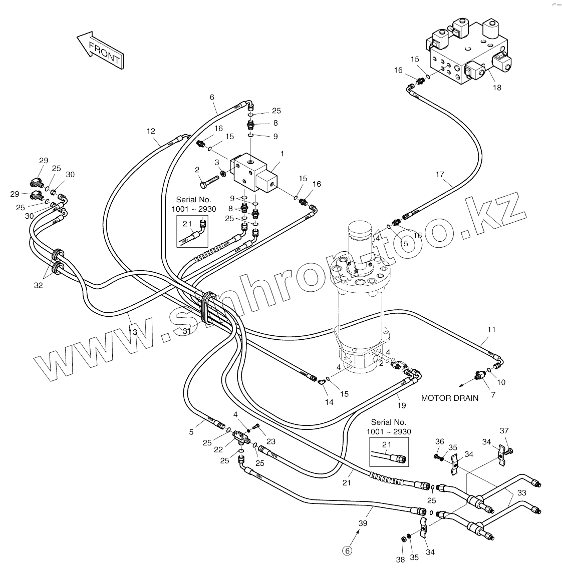Каталог запасных частей к технике: Doosan SOLAR 140W-V. DOZER AND OUTRIGGER PIPING