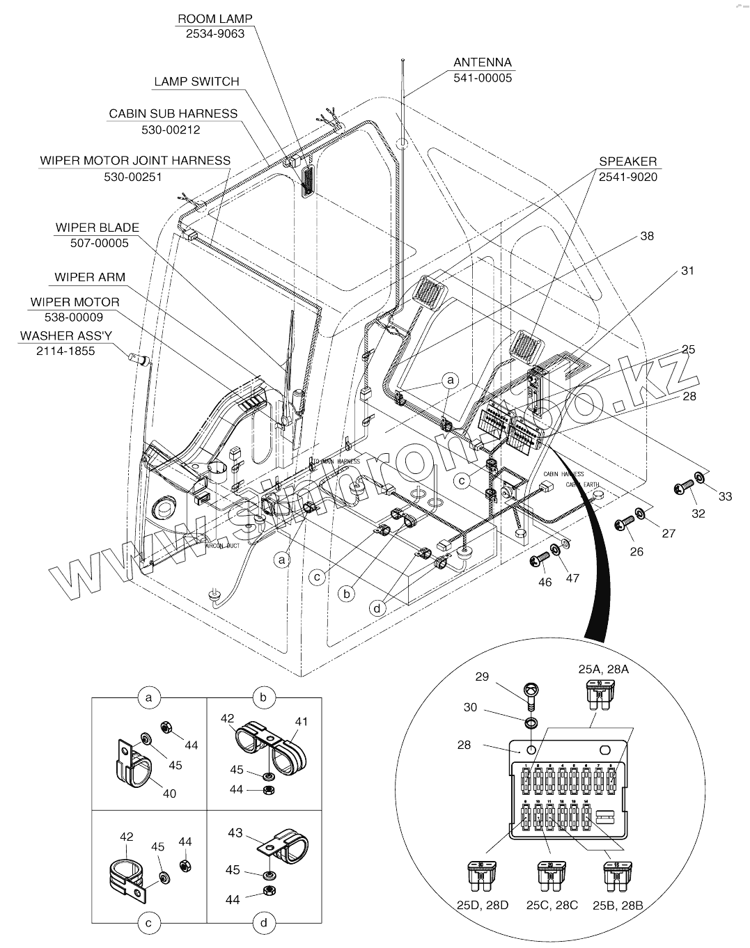 Каталог запасных частей к технике: Doosan SOLAR 140W-V. ELECTRIC PARTS (4) - CABIN