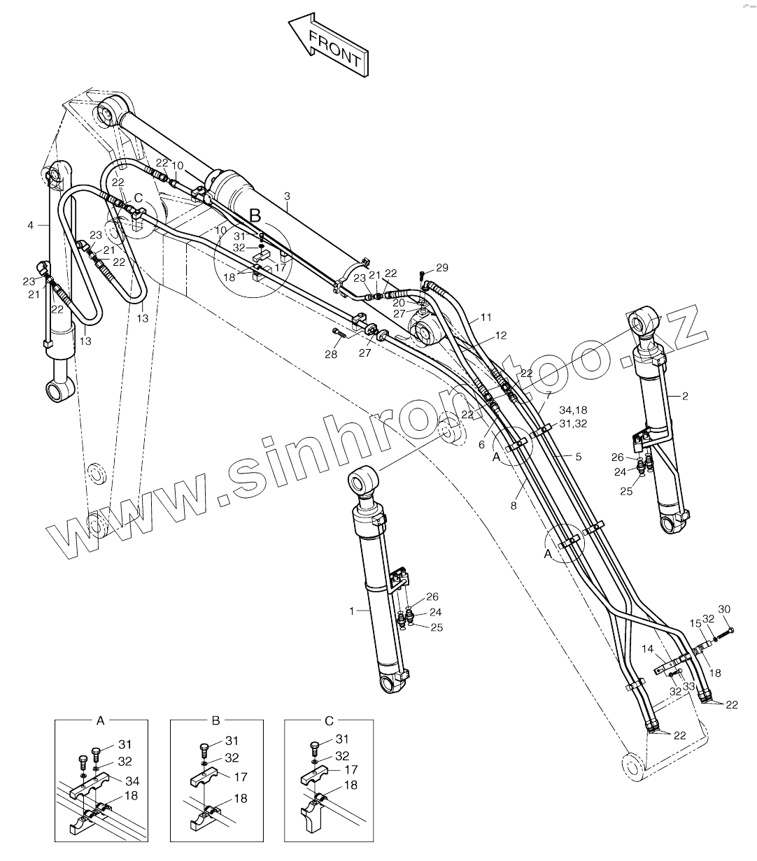 Каталог запасных частей к технике: Doosan SOLAR 140W-V. FRONT PIPING