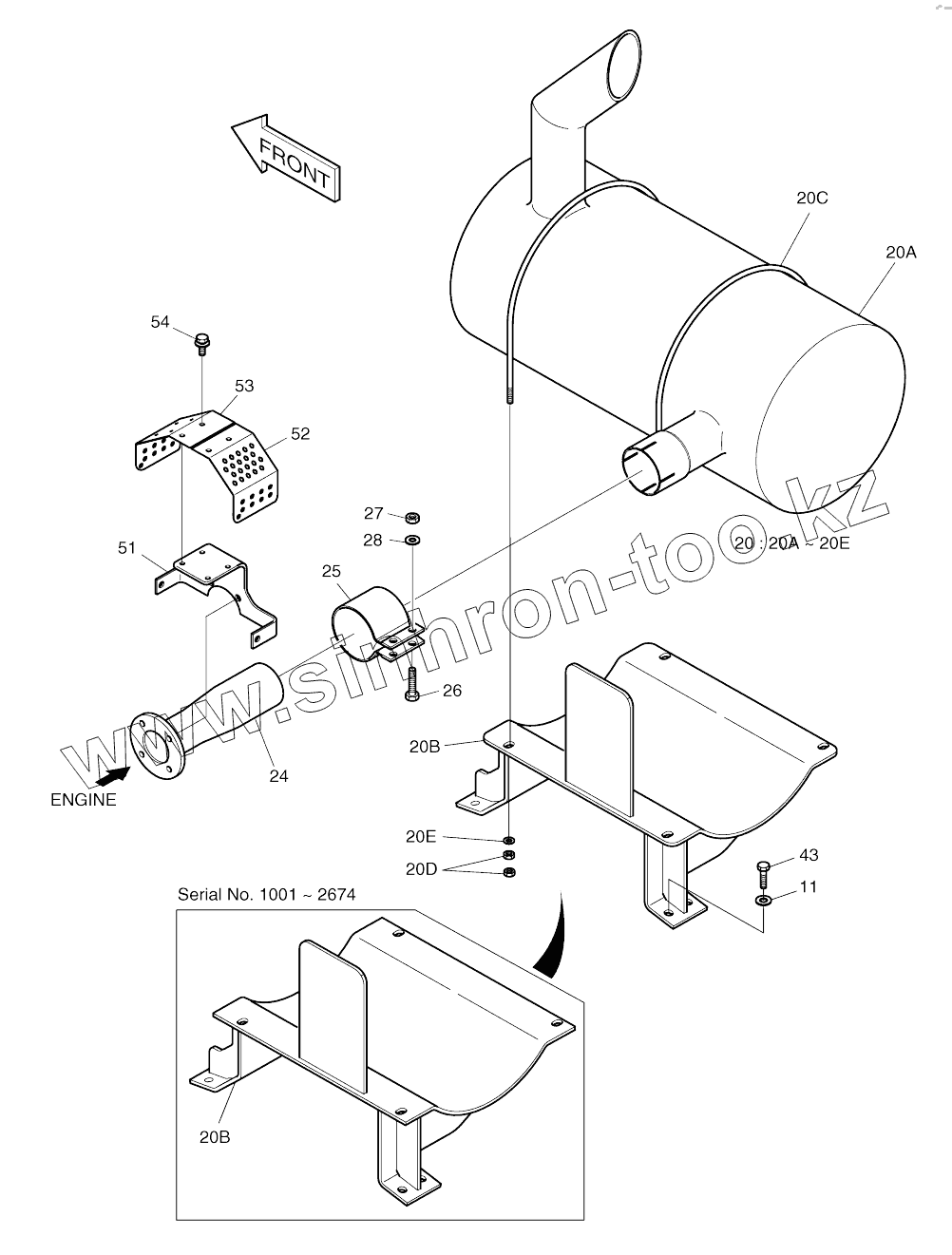 Каталог запасных частей к технике: Doosan SOLAR 140W-V. MUFFLER