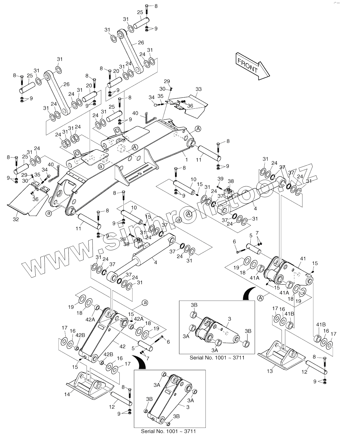 Каталог запасных частей к технике: Doosan SOLAR 140W-V. OUTRIGGER ASSY - FRONT