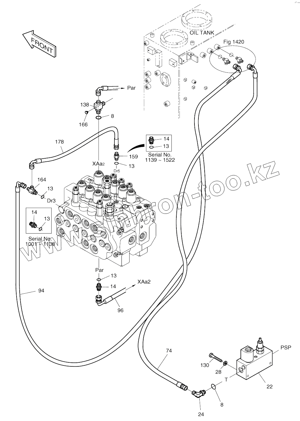 Каталог запасных частей к технике: Doosan SOLAR 140W-V. PILOT PIPING (11)