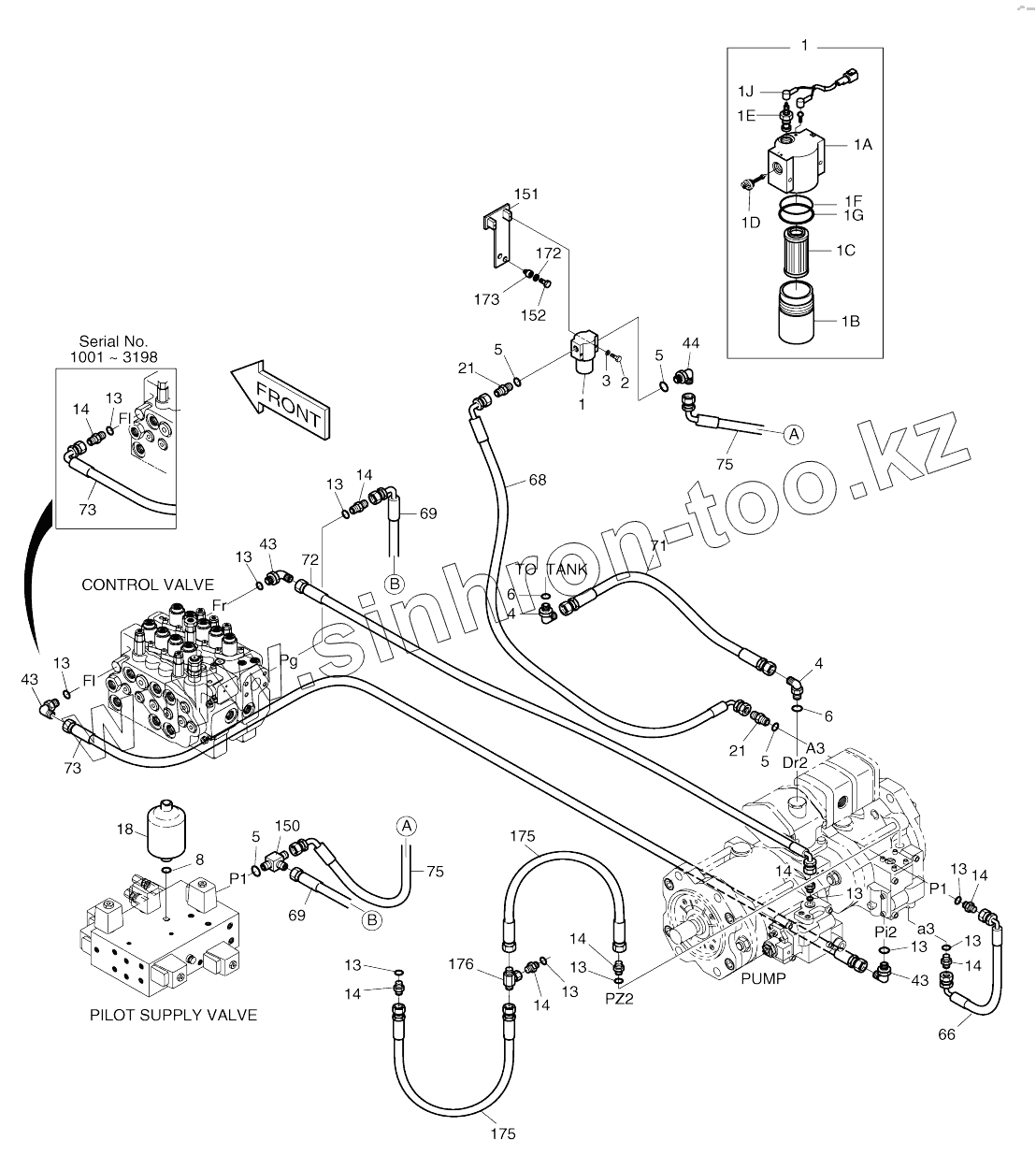 Каталог запасных частей к технике: Doosan SOLAR 140W-V. PILOT PIPING (1)