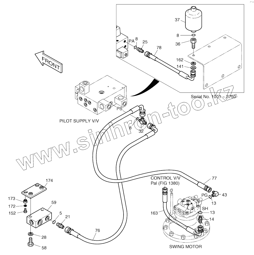 Каталог запасных частей к технике: Doosan SOLAR 140W-V. PILOT PIPING (2)