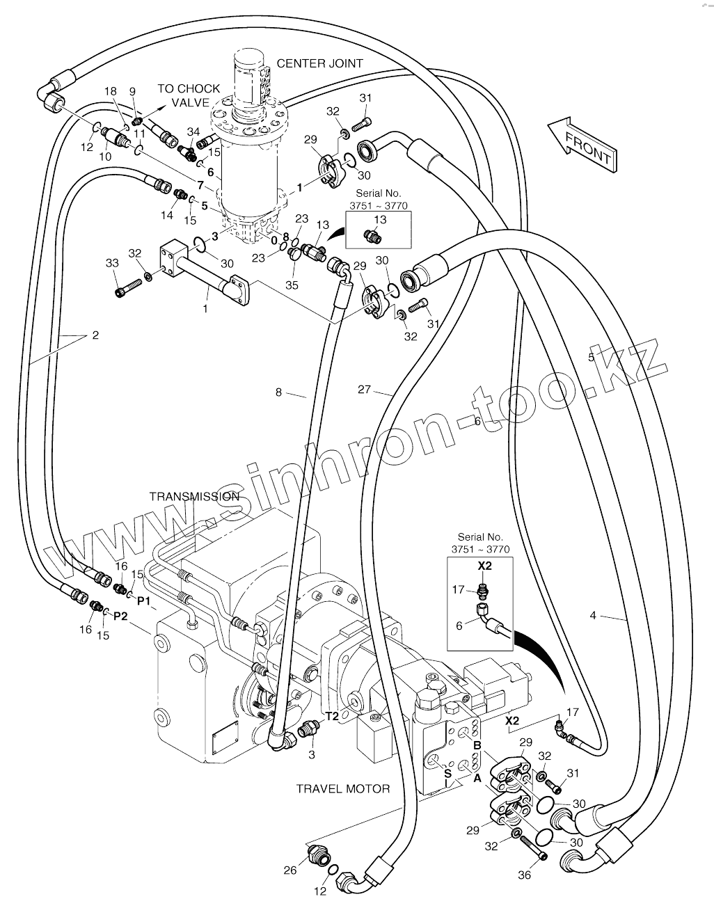Каталог запасных частей к технике: Doosan SOLAR 140W-V. PROPELLING PIPING (3751 -)