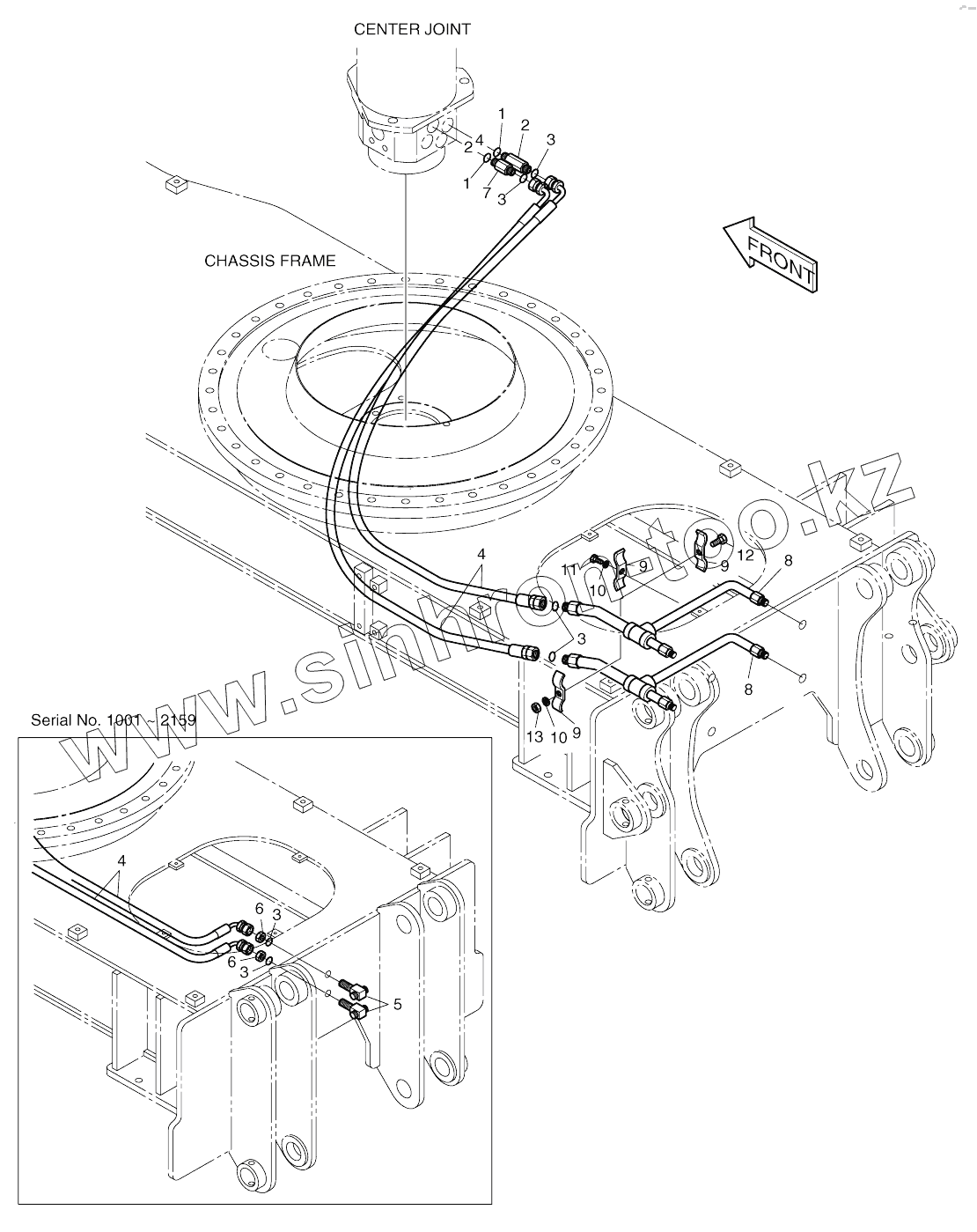 Каталог запасных частей к технике: Doosan SOLAR 140W-V. REAR DOZER ONLY PIPING