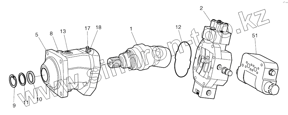 Каталог запасных частей к технике: Doosan SOLAR 140W-V. TRAVEL MOTOR (3751 -)
