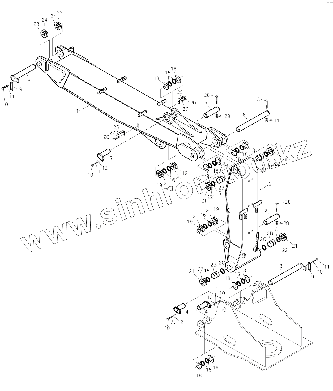 Каталог запасных частей к технике: Doosan SOLAR 140W-V & S160W-V. ARTI. BOOM ASSY