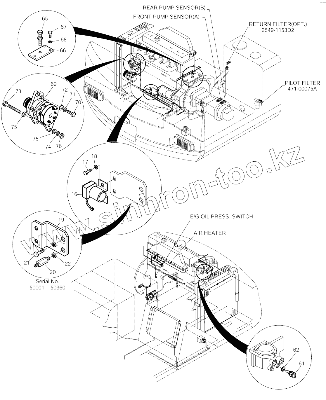 Каталог запасных частей к технике: Doosan SOLAR 140W-V & S160W-V. ELECTRIC PARTS (6)-ENGINE