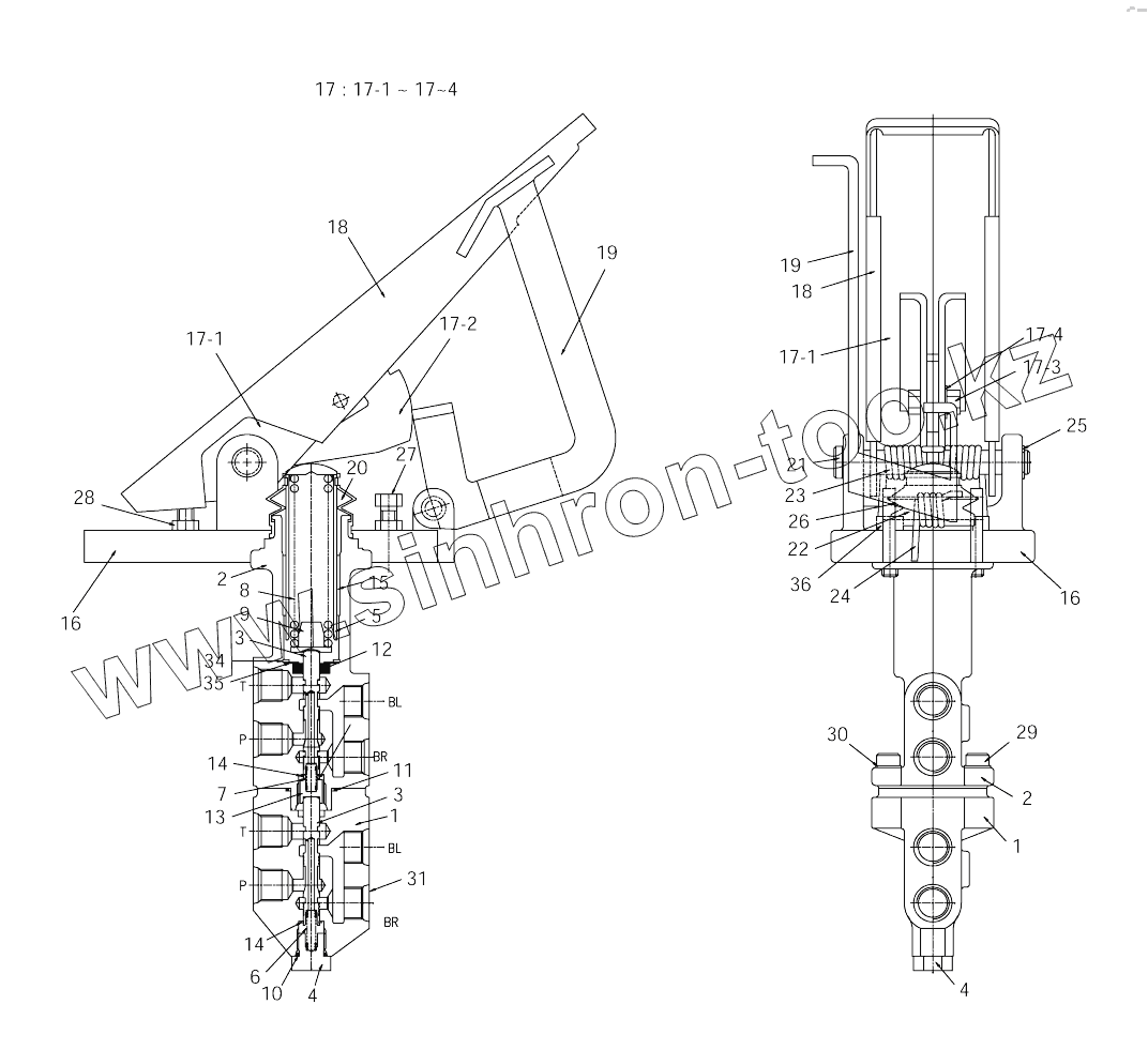 Каталог запасных частей к технике: Doosan SOLAR 140W-V & S160W-V. FOOT BRAKE VALVE