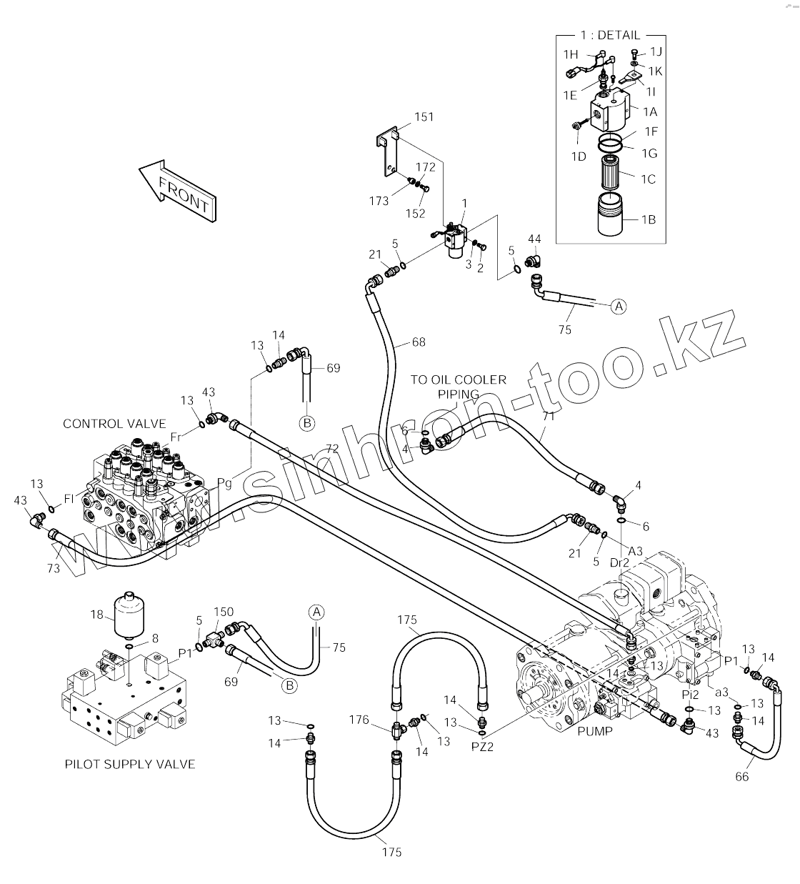 Каталог запасных частей к технике: Doosan SOLAR 140W-V & S160W-V. PILOT PIPING (1)