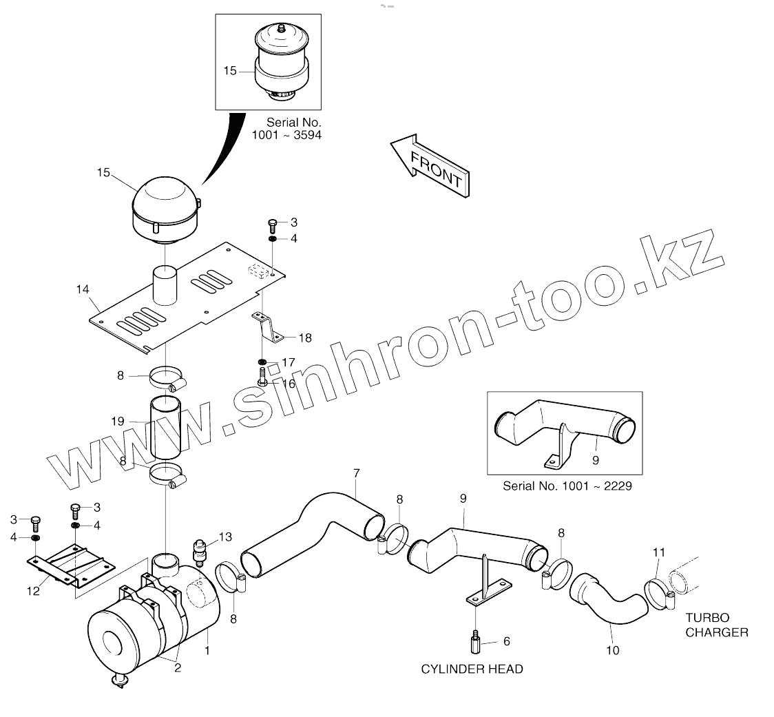 Каталог запасных частей к технике: Doosan SOLAR 160W-V. AIR CLEANER ASSY