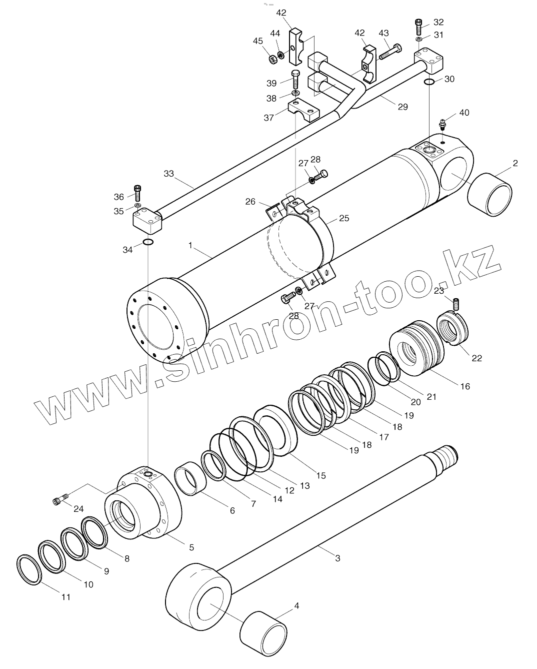Каталог запасных частей к технике: Doosan SOLAR 160W-V. BOOM CYLINDER(R.H)-ARTI.BOOM