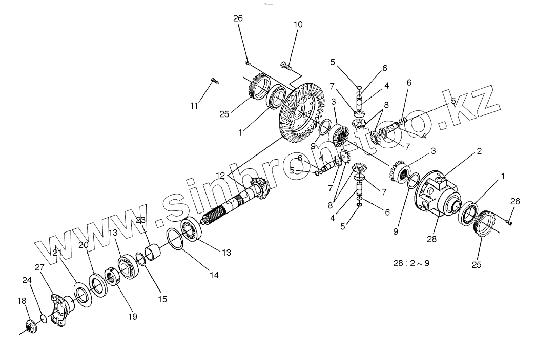 Каталог запасных частей к технике: Doosan SOLAR 160W-V. DIFFERENTIAL-REAR AXLE