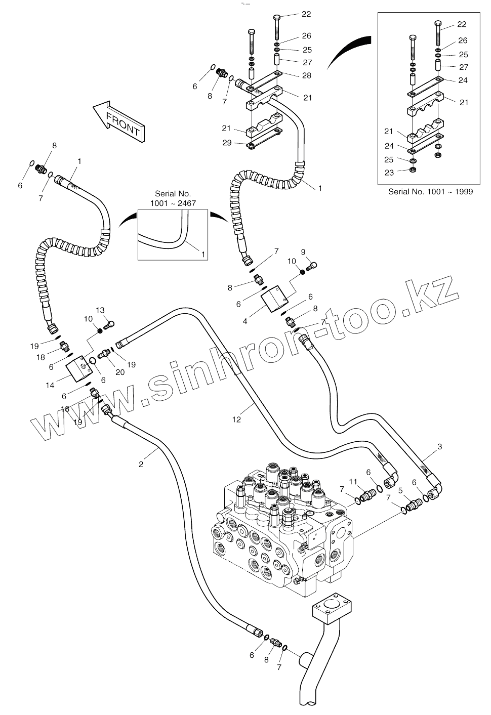 Каталог запасных частей к технике: Doosan SOLAR 160W-V. MAIN PIPING-ONE AND TWO WAY