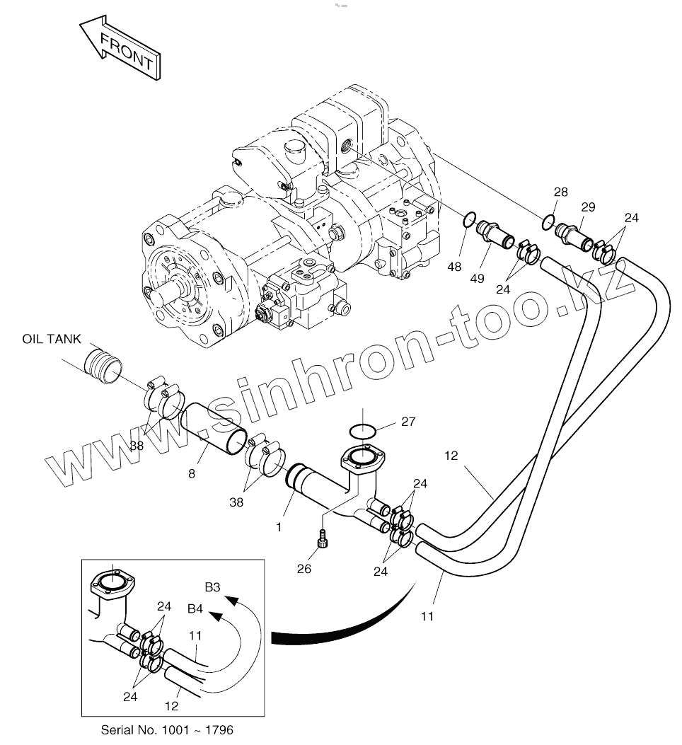 Каталог запасных частей к технике: Doosan SOLAR 160W-V. OIL COOLER PIPING