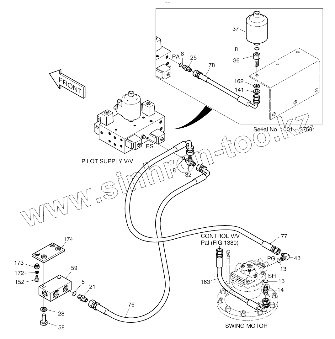 Каталог запасных частей к технике: Doosan SOLAR 160W-V. PILOT PIPING (2)