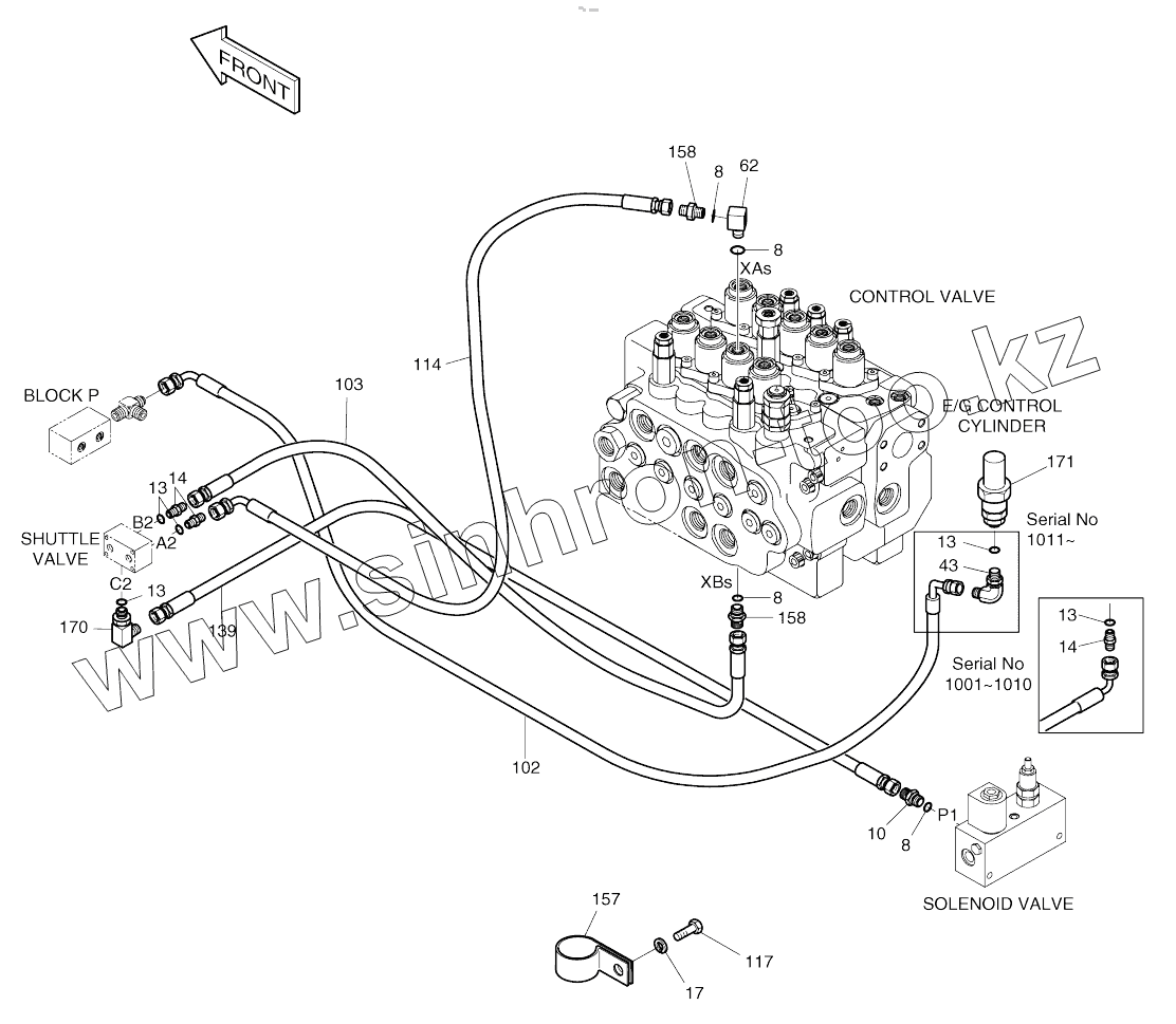 Каталог запасных частей к технике: Doosan SOLAR 160W-V. PILOT PIPING (8)