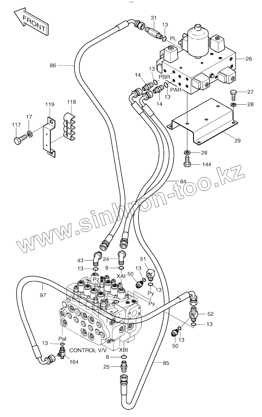 Каталог запасных частей к технике: Doosan SOLAR 160W-V. PILOT PIPING (9) (1001 ~ 3750)
