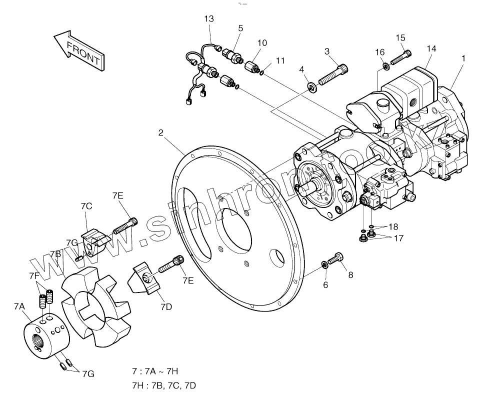 Каталог запасных частей к технике: Doosan SOLAR 160W-V. PUMP INSTALLATION-OPTION