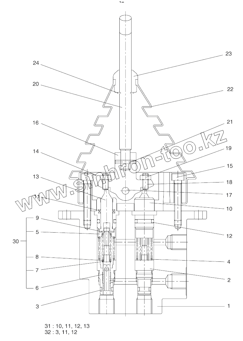 Каталог запасных частей к технике: Doosan SOLAR 160W-V. REMOTE CONTROL VALVE-DOZER