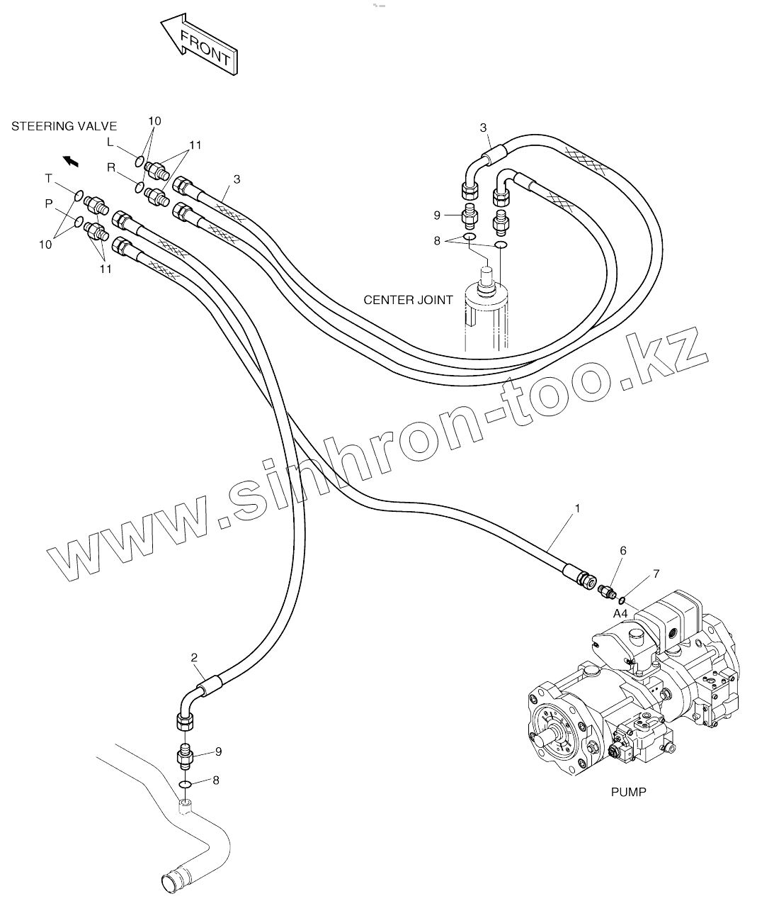 Каталог запасных частей к технике: Doosan SOLAR 160W-V. STEERING PIPING