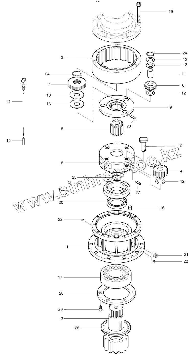 Каталог запасных частей к технике: Doosan SOLAR 160W-V. SWING REDUCTION GEAR
